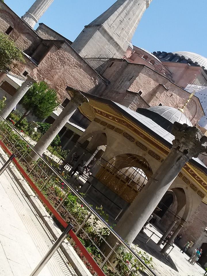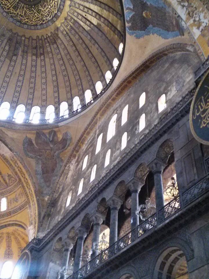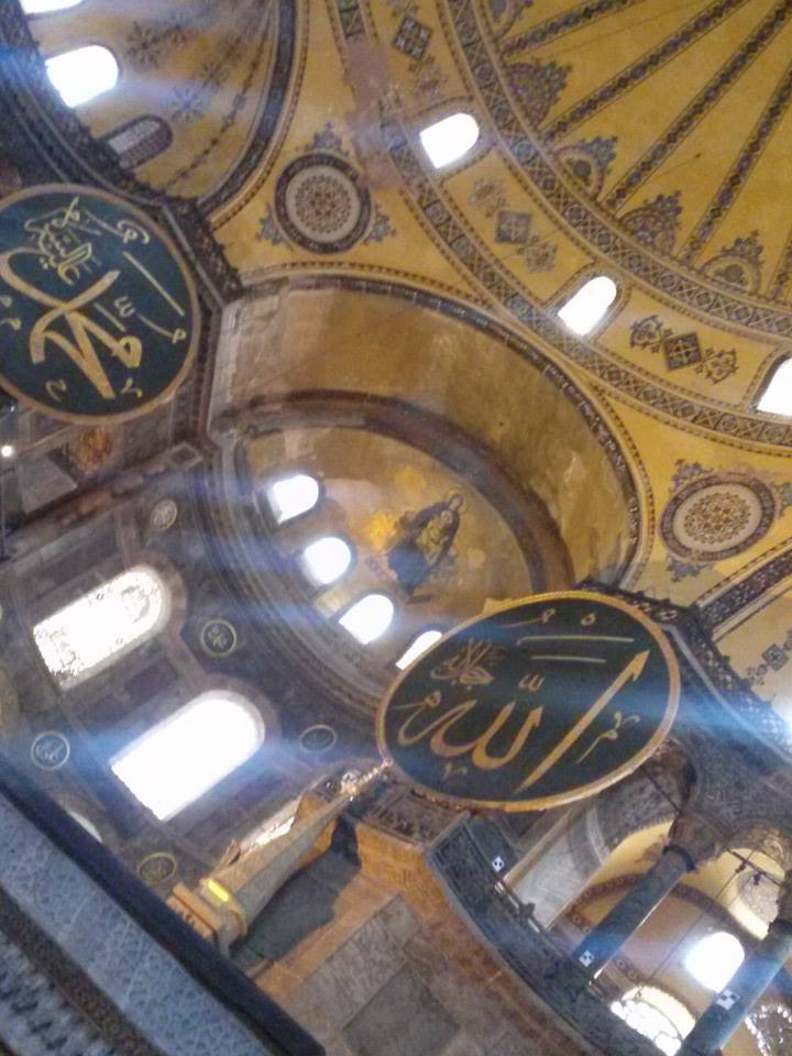 From our flat, it was just a short walk to Sultanahmet Plaza, which connects the gorgeous Blue Mosque and the amazing Hagia Sophia. I remember seeing a photograph of the Hagia Sophia as a little girl and being struck by the ethereal beauty of the light filtering in and the "floating" dome. Seeing it in person became a dream of mine. I studied it as an Art History major and a Medieval historian, and after becoming Catholic, and then Byzantine Catholic, I wanted to see it all the more. Originally built by the Emperor Constantine, inaugurated on my birthday in the year 360, it was the principal church of the Byzantine Empire. It endured the fall of Byzantium and the rise and fall of the Ottoman Empire. It has been an Orthodox Church, a Catholic Church, a mosque, and now a museum.